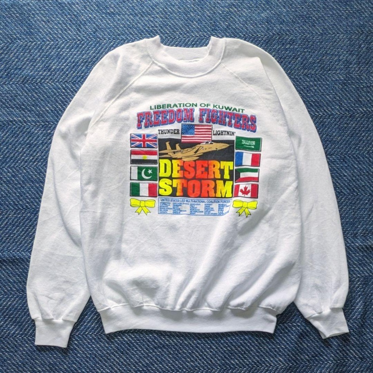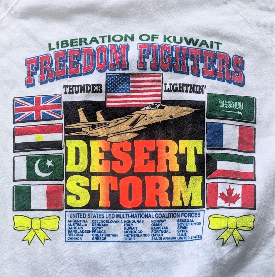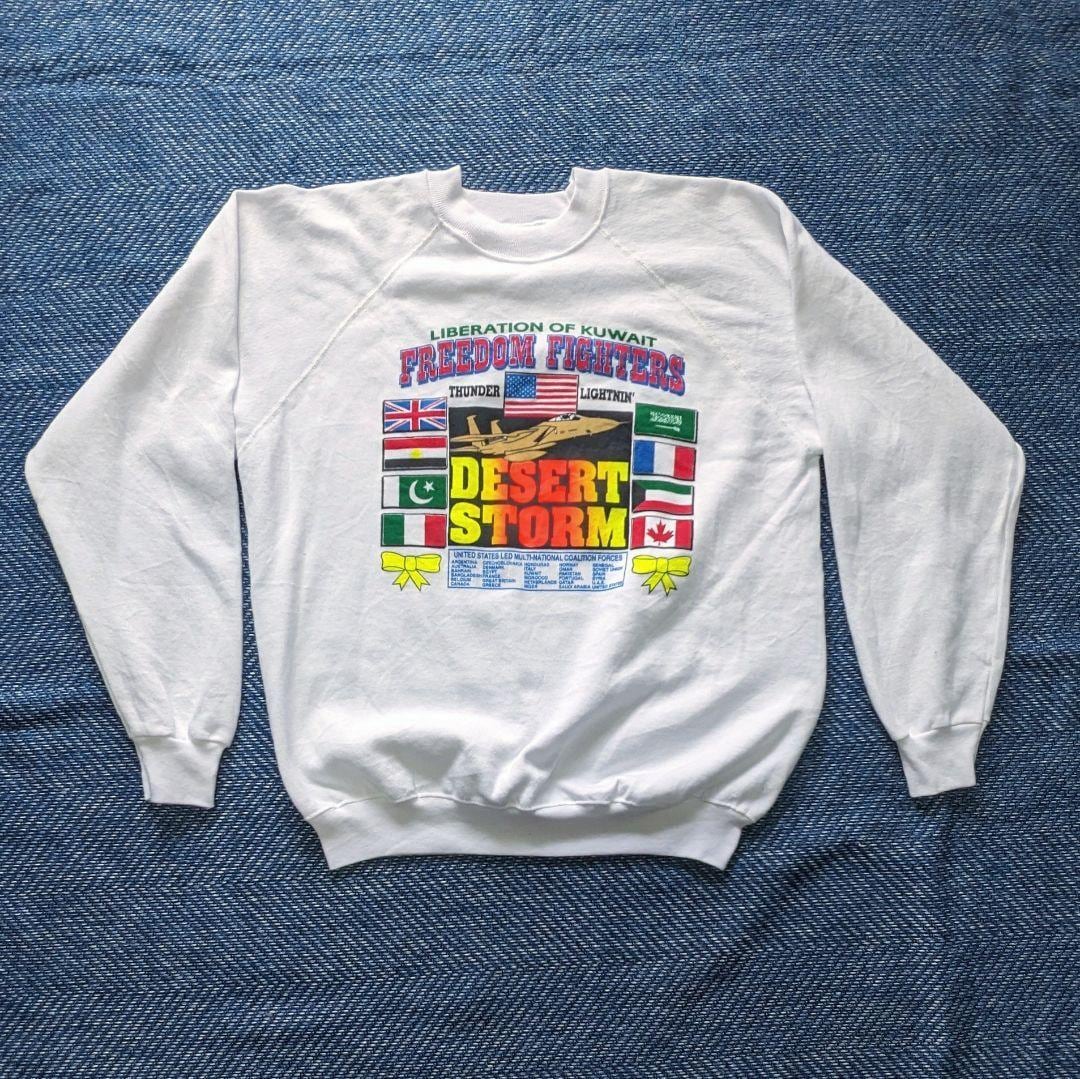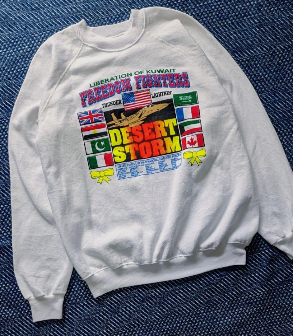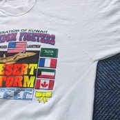 タグのデザイン(Hanesの青い枠のデザイン)と、1991年の湾岸戦争「デザート・ストーム(砂漠の嵐作戦)」をテーマにしていることから、1991年当時のオリジナル、あるいはその直後のものと推測されます。