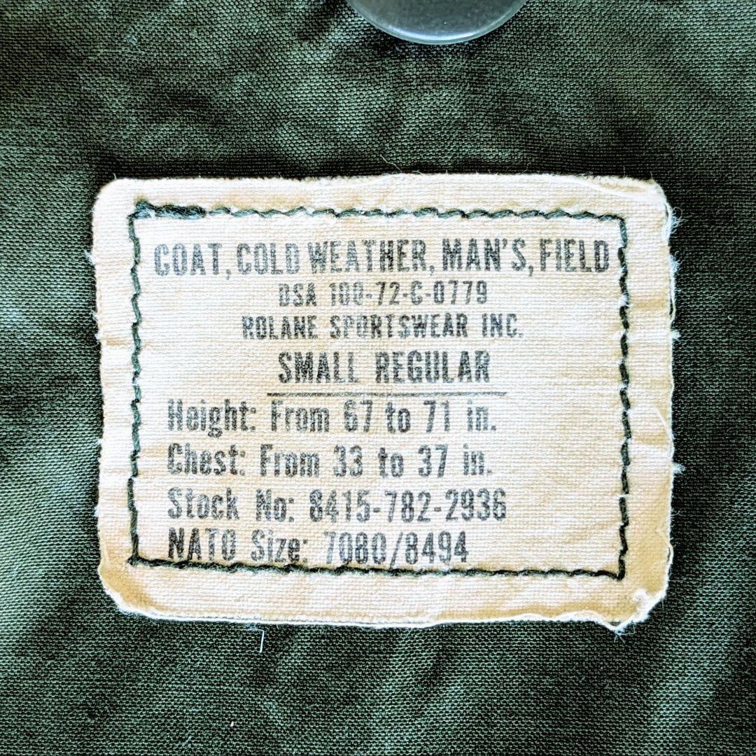1972年度会計、米軍実物のM-65フィールドジャケットです。 コントラクト番号(DSA 100-72-C-1589)より、1972年製であることが確認できます。