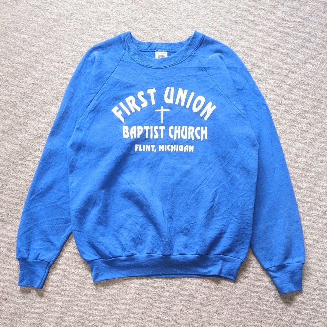希少な教会プリントでミシガン州フリントにある「First Union Baptist Church」(第一ユニオン・バプテスト教会)のオフィシャル物です。中央の十字架とアーチロゴのバランスが抜群です。