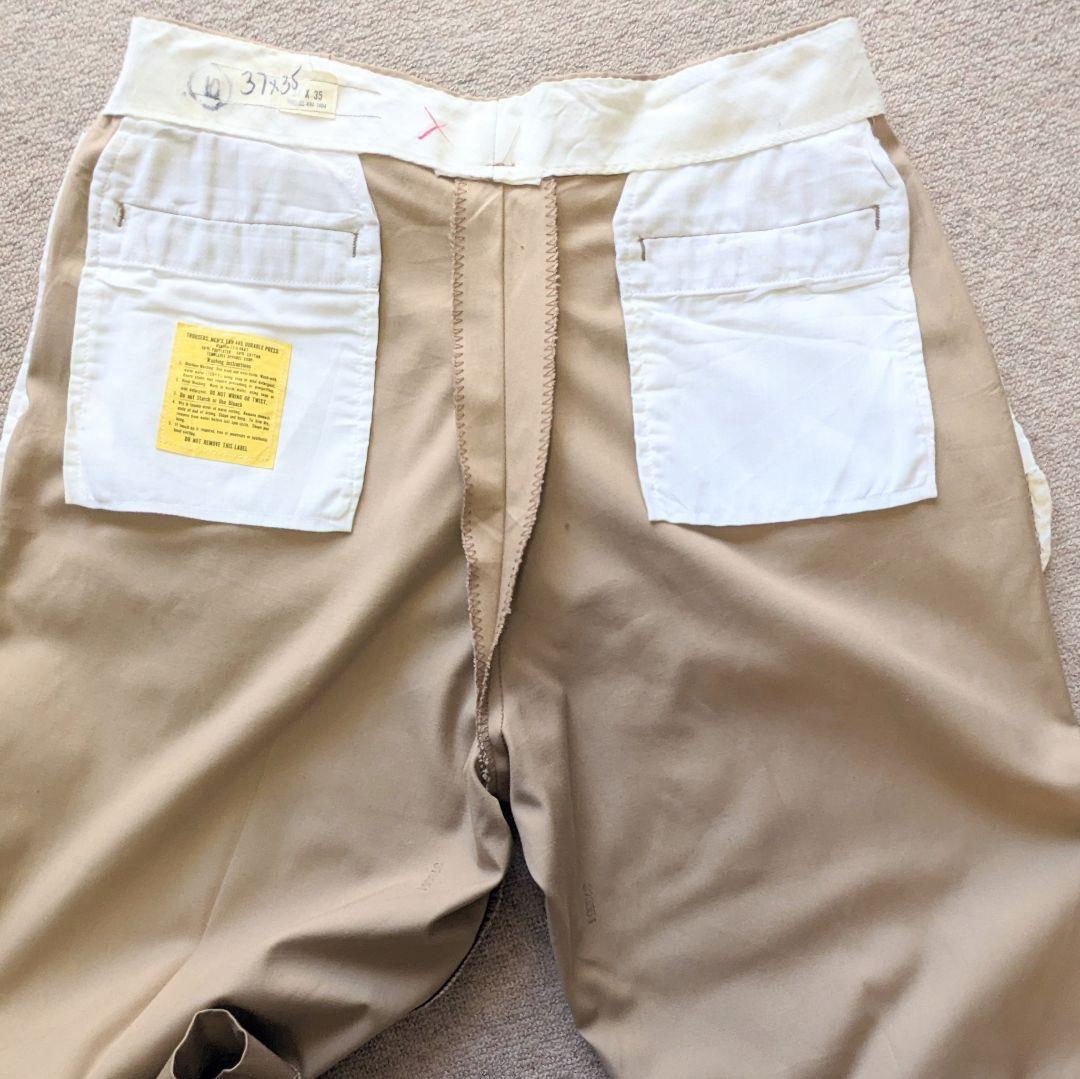 フロントは堅牢なフック仕様。ジッパーには希少な『GENERAL』製ブラスジップを搭載しており、細部まで実物ヴィンテージの魅力が詰まっています。後ろポケットの仕様など、当時の官給品ならではの作り込みが素晴らしい一本です。