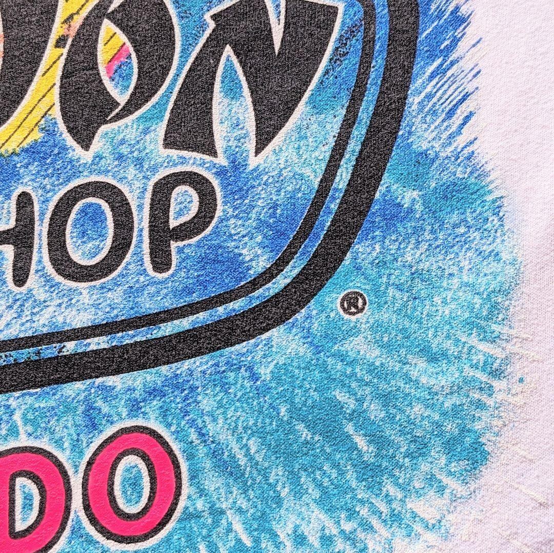 当時のアメリカ製らしいタフで柔らかな質感がたまりません。白ボディにネオンカラーが映え、一枚で主役を張れるアイテムです。