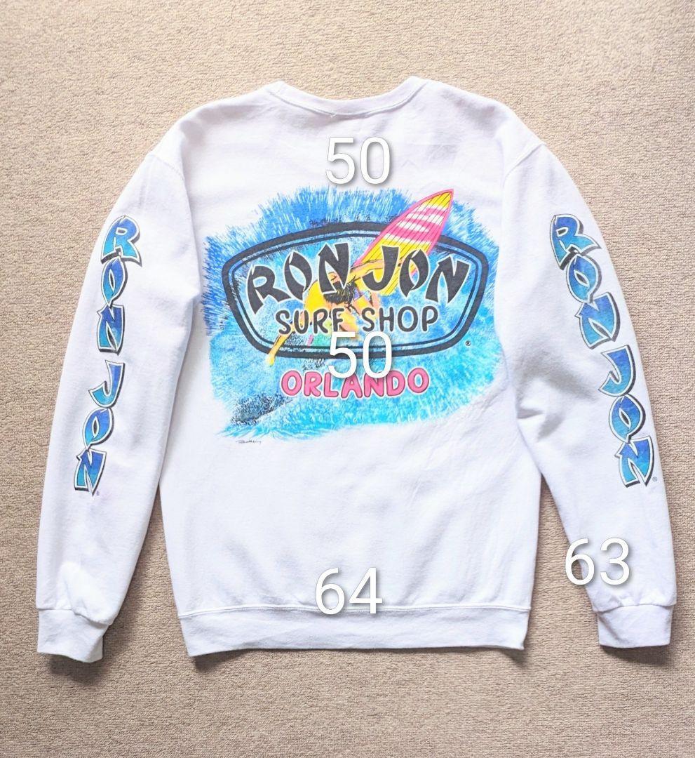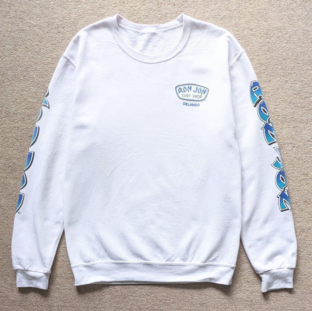 90s RON JON ロンジョン スウェット 両面 両袖 プリント M 白