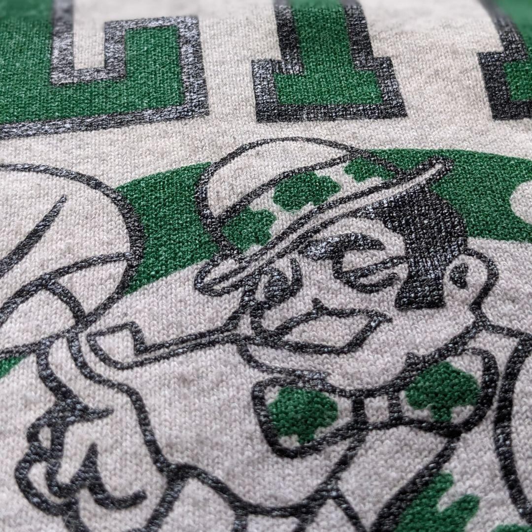 圧倒的人気のNBAチーム、セルティックスのラバープリントが映える一着。希少なMADE IN U.S.A.で、肉厚ながら柔らかな「MAXIMUM SWEATS」ボディが使用されています。