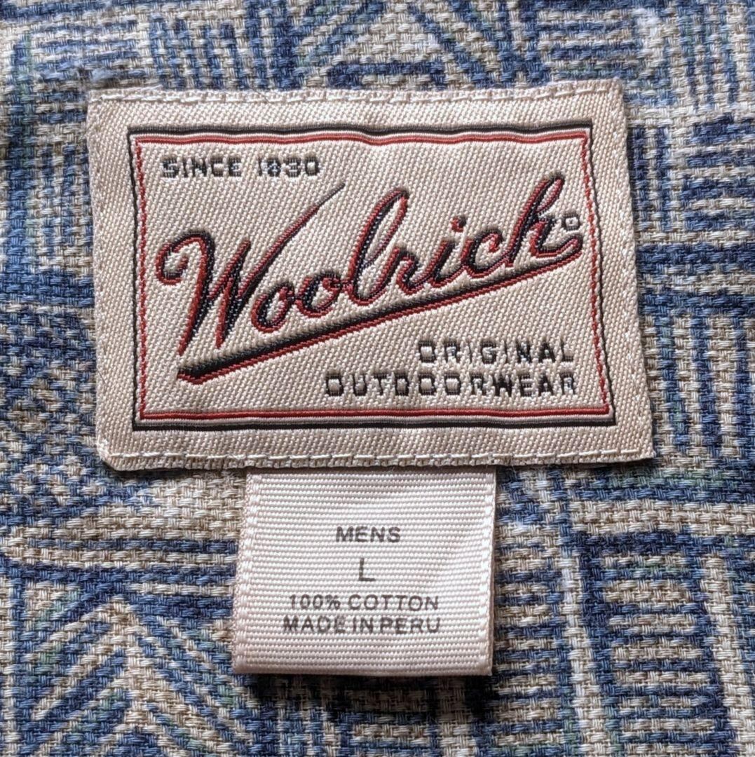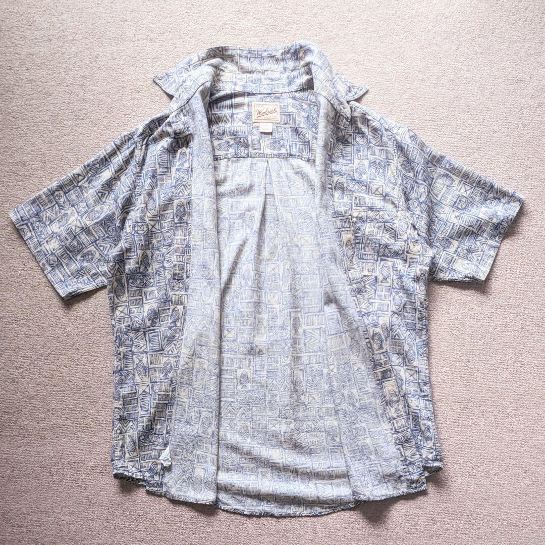 90s ウールリッチ 半袖BDシャツ 魚柄 総柄 ホップサック生地 XL相当