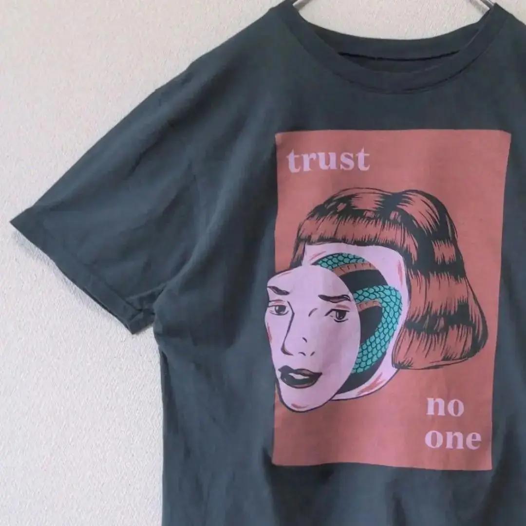 正面にはTRUST NO ONEの文字と女性の顔がプリントされています