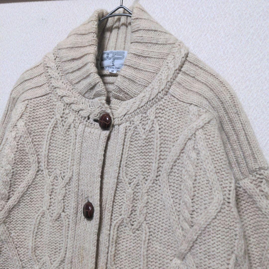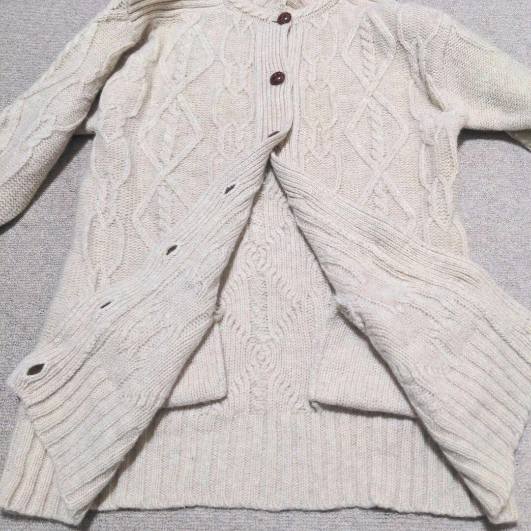 ざっくり厚手のケーブル編みでクルミボタンがとても可愛いです