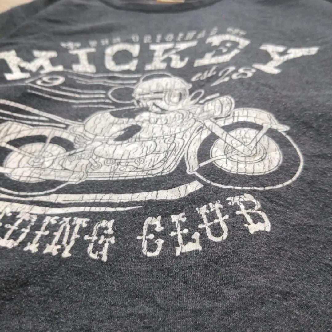 ミッキーがバイクに跨り疾走しているデザインがカッコよく擦れたプリントもヴィンテージ感抜群です