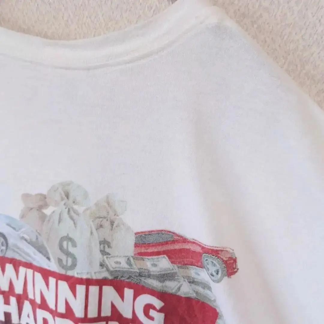 フロント胸にはロゴ、バックには同ロゴと車とお金の山が大きくプリントされています